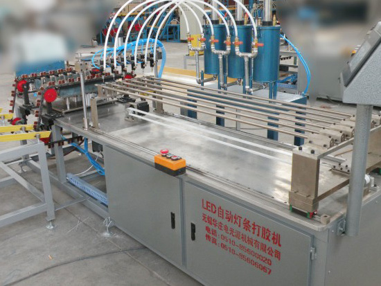 簡單來說LED燈管打膠機他的性能是非常不錯的,他不僅有很好的通用性,還有很高的自動化配備,所以很多時候我們也會把LED燈管打膠機叫做LED燈管自動打膠機。他的自動化體現在當我們在收料的時候只要一個人就好了。他的玻璃端頭還有很高的整平功能,這樣可以更好的來避免我們作業的時候出現位置的偏差,這樣能夠更好的保證我們產品的質量。在LED燈管打膠機中他的壓合也是自動的,這樣他能夠讓膠水壓合的更加勻稱。